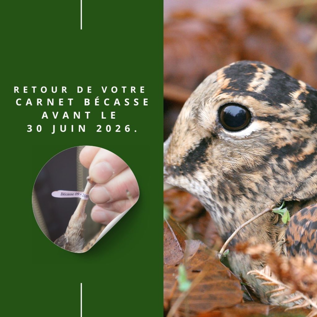 N’oubliez pas de retourner OBLIGATOIREMENT votre carnet bécasse avec ou sans prélèvements avant le 30 juin 2026.